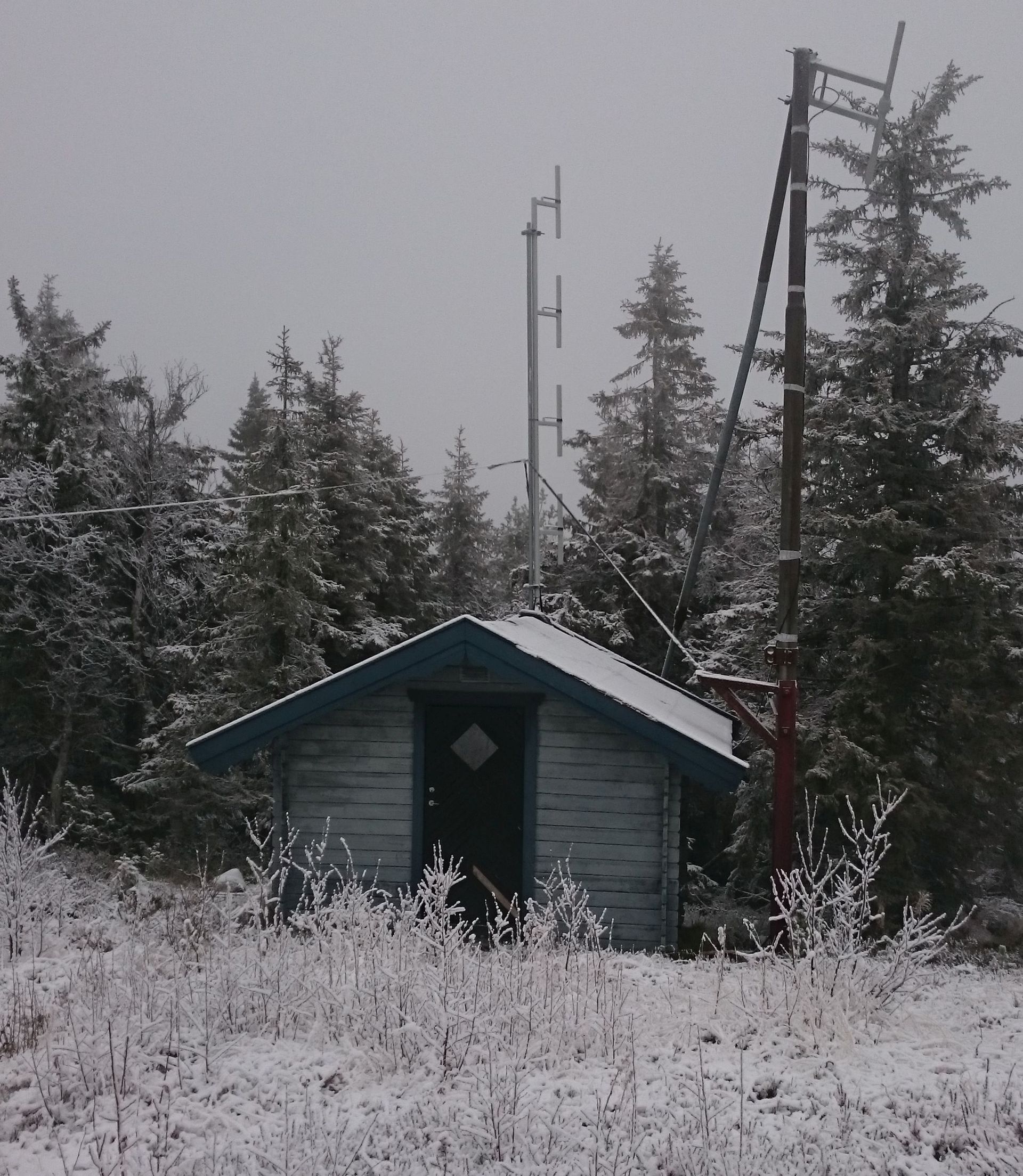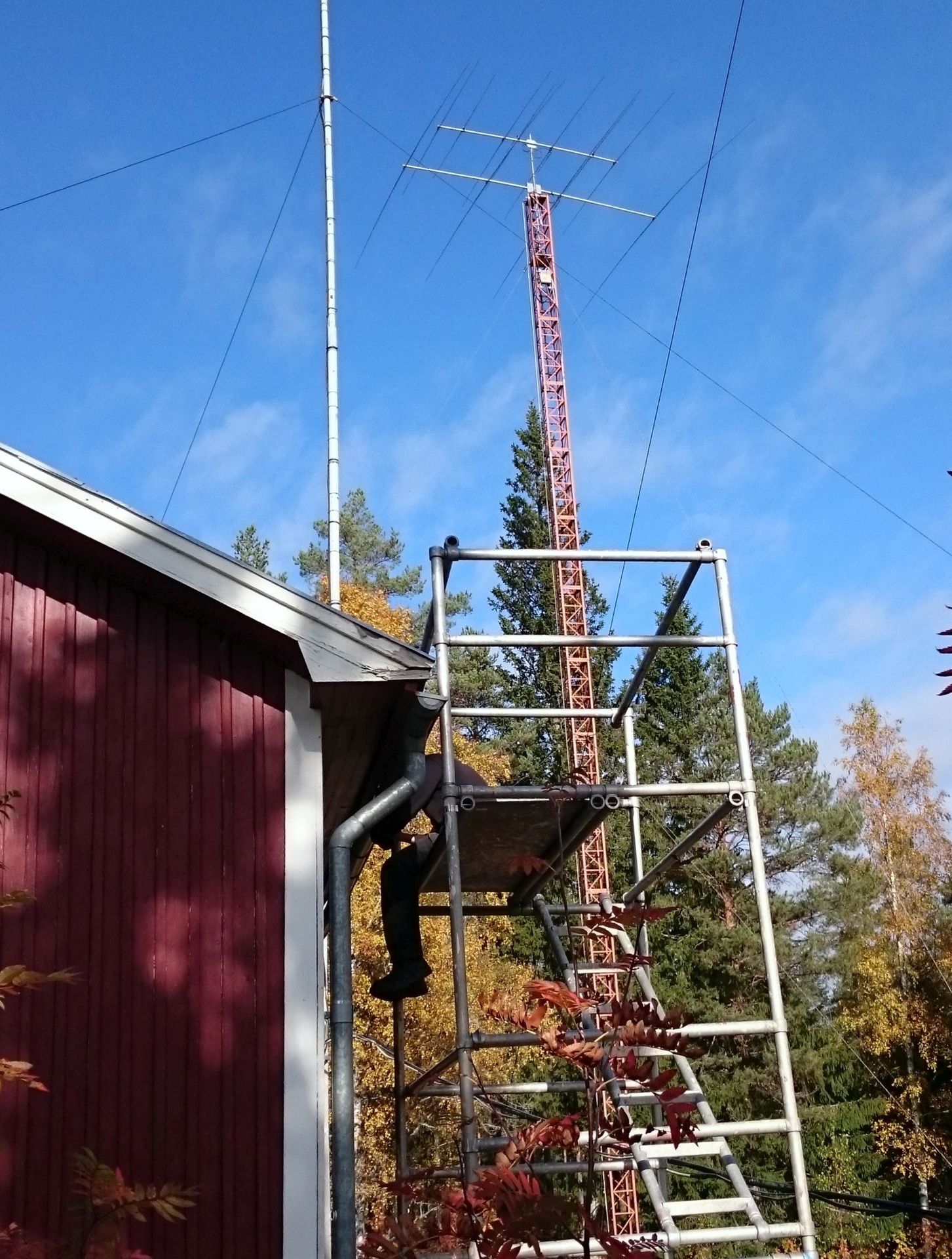 Repeatern har också fått en ny antenn, hösten 2015 monterades en 4-stack Aerial Oy, den är vänd så att baksidan vetter mot närradions antenn. (Masthaveriet t h om stugan drabbade ett lokalt åkeri.)